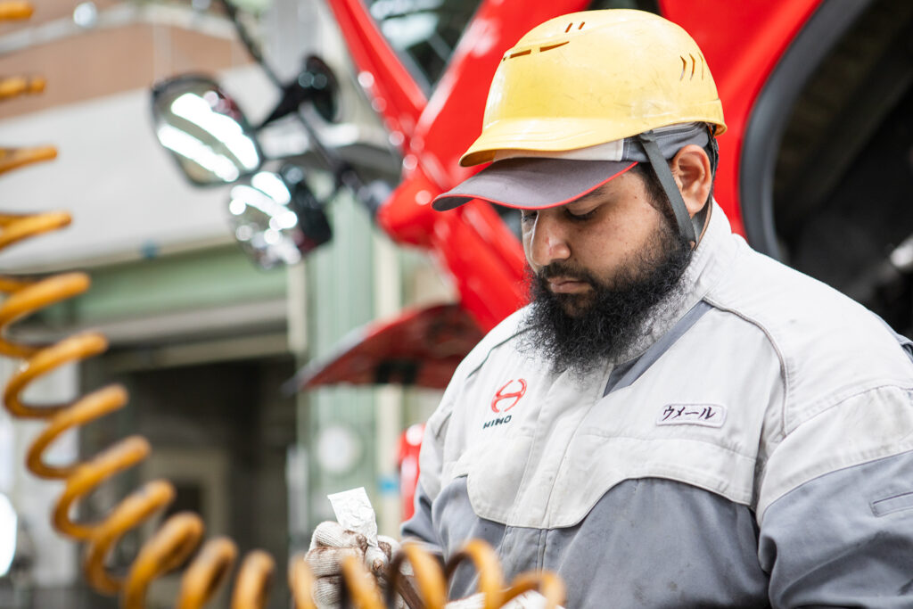 富山日野自動車は厳しくなく、働きやすい職場です。最初は日本語や部品の名前が難しく苦労しましたが、先輩がていねいに教えてくれたことで少しずつ成長できました。今の目標は大型免許の取得です。