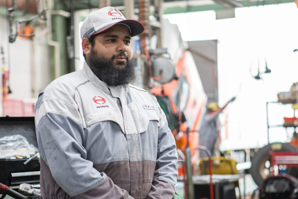 日本に来て7年以上になります。友人の紹介で入社し、4年目になりました。日本語学校と整備の専門学校を卒業し、経験を積んでから富山日野に入社しました。