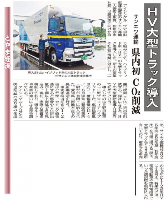 6月にサンエツ運輸株式会社様に納めさせていただいた車両に関する記事が地元の北日本新聞に掲載されました。