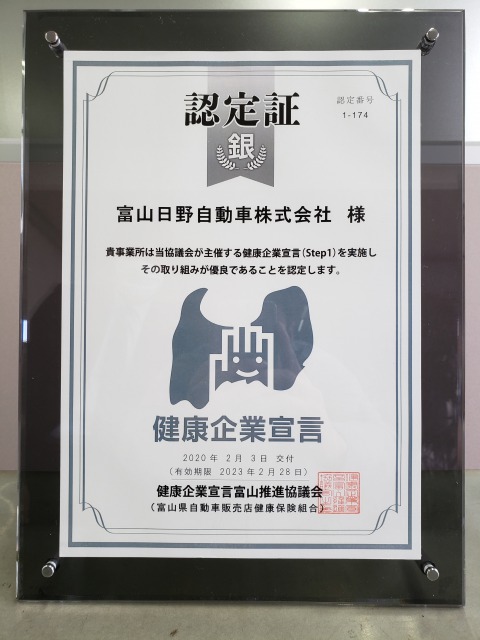 「とやま健康企業宣言」銀(Step1)の認定を受けました