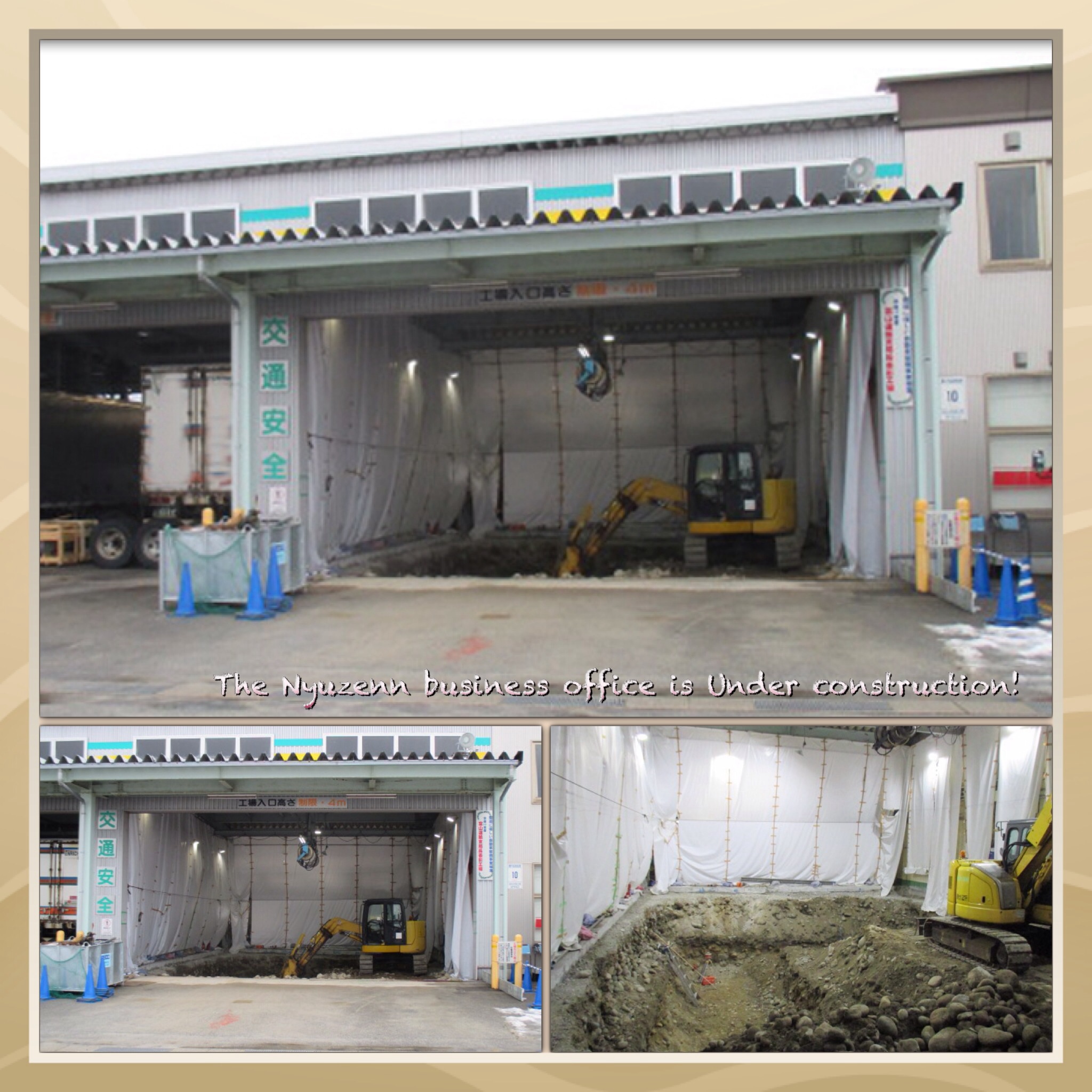 2015.01.15 お知らせ 入善営業所にてリフトの新設工事をしています 今年に入り、入善営業所にて新しいリフトの導入工事が始まりました! 写真を撮りましたが、工事が始まったばかりなので、まだ穴掘りの段階です・・・ 新しく2柱のリフトを導入するため、現在工事中です。 完成は2月中旬を予定しています!完成が待ち遠しいです♪ 工事中はお客様にご不便をおかけすることもあると思いますが、宜しくお願い致します。
