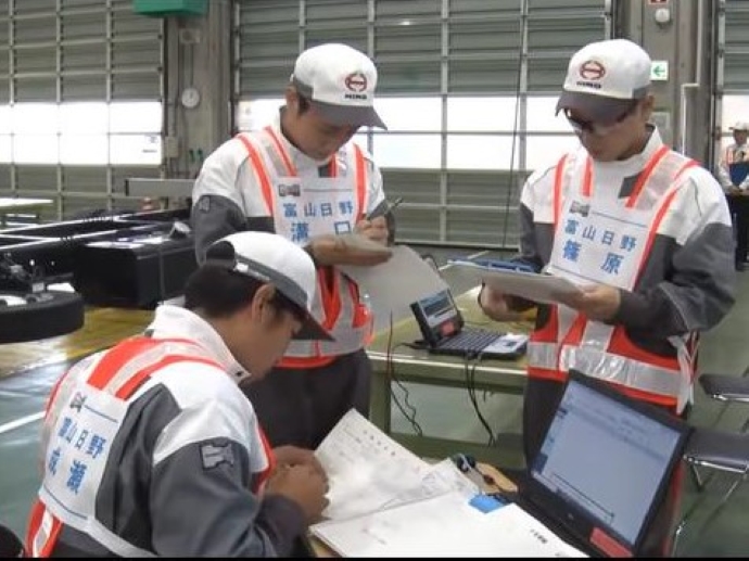 サービス技術コンクールは、全国の日野販売会社のサービスエンジニア・フロントアドバイザーおよび部品スタッフの