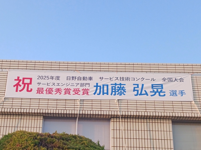 メカニック部門1位獲得 横断幕を本館正面に設置しました!
