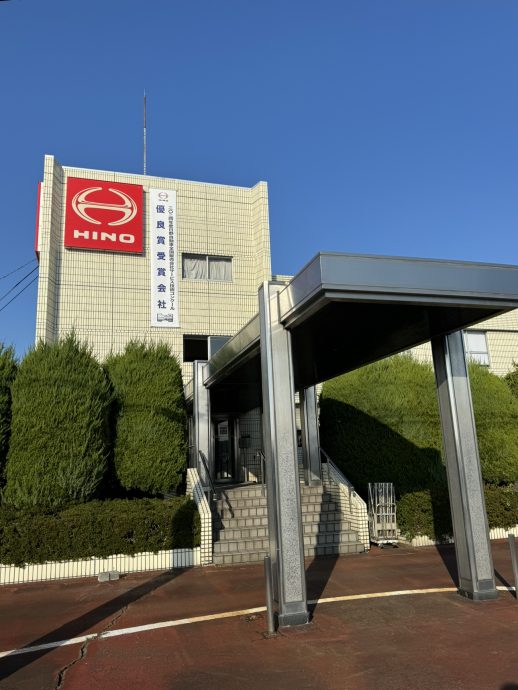 2024.11.14 サービス 垂れ幕を本館正面に飾らせていただきました! 先月開催されました日野自動車全国販売会社サービス技術コンクールにおいて総合競技で3位に入賞しました。 今回の入賞にあたり、いただきました垂れ幕を本館正面に飾らせていただきました。