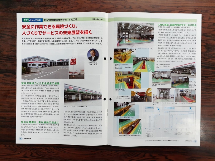 掲載内容は、バンザイ様にて導入いただいたフロアリフトはもちろんのこと、弊社の人材育成にも触れていただくなど、会社全体の紹介となっています。