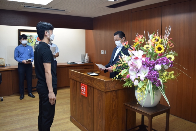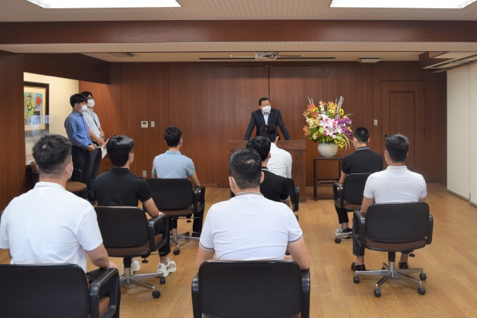 この度、弊社及び関連会社の大成産業ではベトナムから8名の技能実習生を採用し、8月5日(金)に入社式を執り行いました。