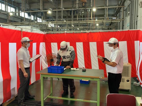 メカニックで行われた単体競技では、安全作業を最優先に評価し、作業の正確性・迅速性を採点