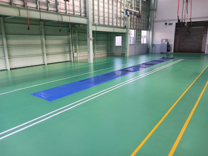 1月に増設した本社工場の車検レーンですが、この度、床面を塗装コーティングしました。