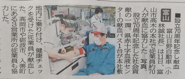 もあり、献血第1号として当時の社員74名が献血を実施し、今年でちょうど
