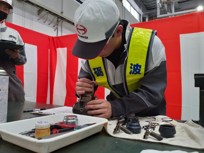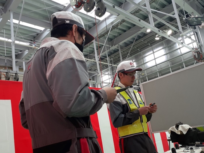 これは、サービス部門に勤務するスタッフを対象に、メカニックの技術力研鑽、人財育成、モチベーションの維持向上を目的とするもので、今回は、入社4年以内の若手メンバーにて行いました。