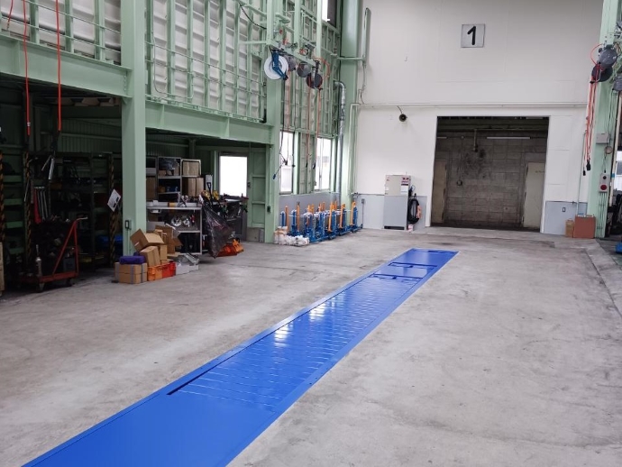 昨年8月から工事を進めていました、本社車検工場の車検レーン増設工事が完了しました。