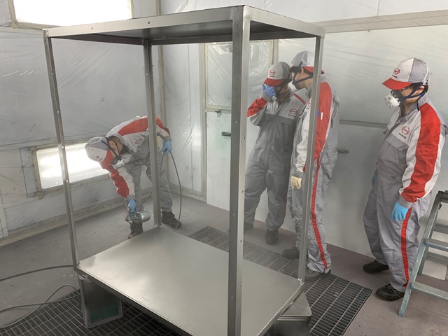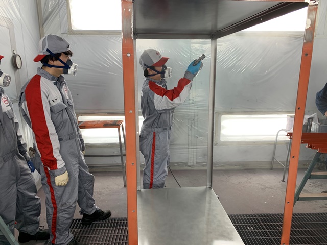 工場長から渡された設計図をを基に部材の切り出しから、溶接、塗装、仕上げ作業を行い、