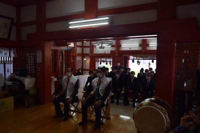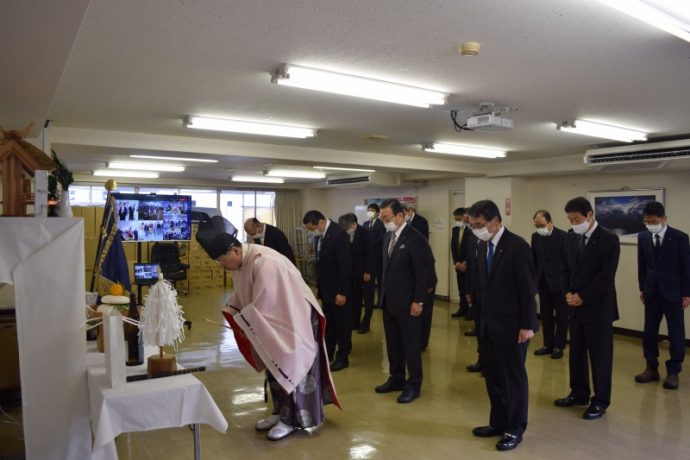 各セクションでソーシャルディスタンスを確保し視聴する形で神事を執り行いました。