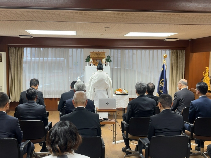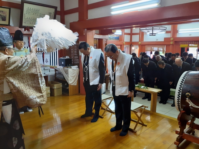 本日は始業式にて神事が行われ、お客様をはじめ、皆様の安全を祈願するとともに、社員一同、今年も安全第一で