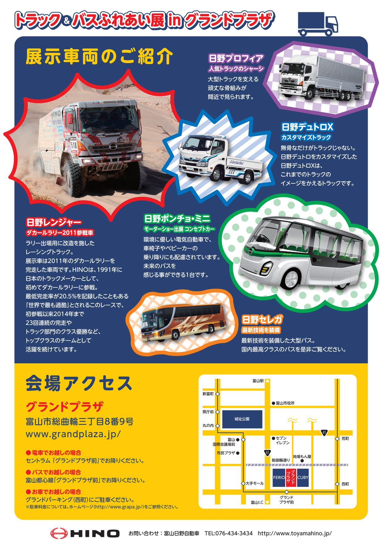 ※このイベントに関する問い合わせ先 富山日野自動車㈱ 飯田 まで TEL 076-434-3434