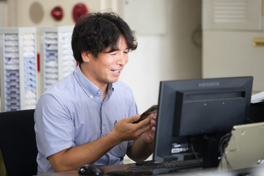 入社当初は整備士に配属されましたが、野球がきっかけで事務方での活躍を期待され、ほどなく事務所に異動しました。事務所では電話応対をしながら、トラックの納車・引き取り・配送なども担当し、お客様がどんな方なのかを現場で学びました。